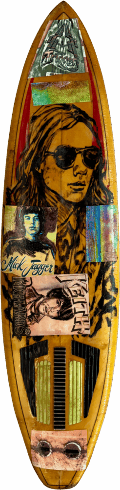 This original surfboard has been individually painted by iconic Australian artist David Bromley featuring Mick Jagger and Keith Richards.