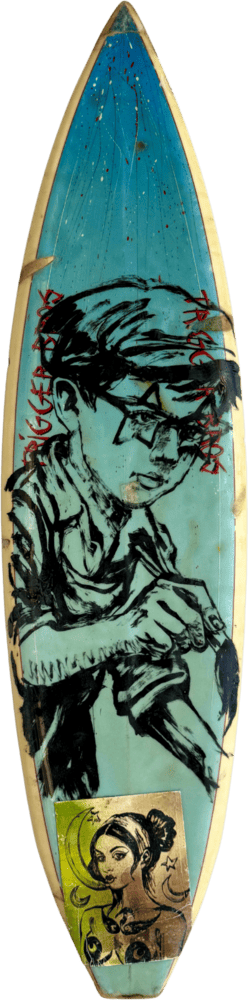 Original surfboard artwork by iconic Australian artist David Bromley.